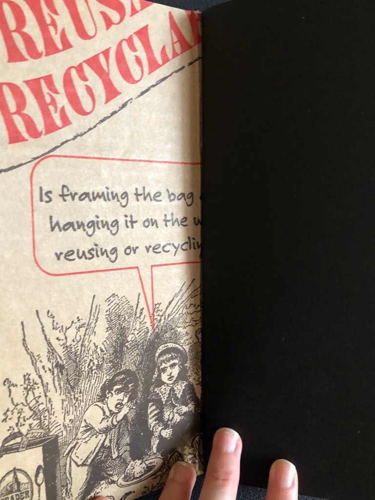 This issue is a 4″x9″ book featuring a beaded clasp, upcycled cardboard, and Trader Joe’s bags. It was printed in color at home on 100% recycled paper, and created between the grading of papers, submitting of assignments, and life in quarantine.
